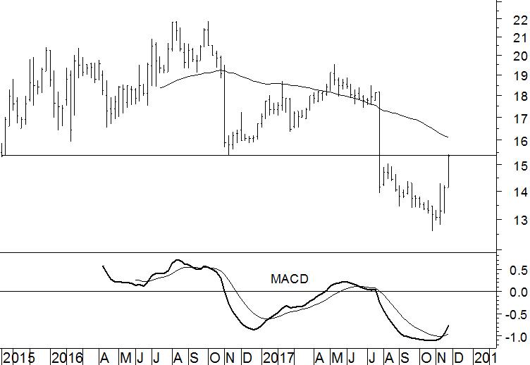 Eveneens is te zien dat het 40-weeks gemiddelde in neerwaartse richting beweegt en de belangrijkste toppen op een lager niveau uitkomen. Daarom verwachten wij dat de verkoopdruk in de komende weken terugkeert. Oftewel, het opwaarts potentieel is uiterst beperkt, ondanks de opwaartse kruising van de MACD-indicator. Gelet op onze verwachting van een nieuwe ronde van koersdalingen blijft het verkoopadvies van kracht.