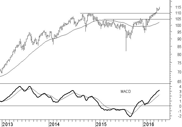 Johnson & Johnson (JNJ) is in februari door ons van een koopadvies voorzien. Dat was nadat het aandeel de weerstand rond $105 wist te doorbreken. Sindsdien heeft de stijgende trend zich voortgezet. Inmiddels is ook het $110-weerstandsniveau doorbroken waardoor Johnson & Johnson zich op historische koersgronden bevindt. Wij verwachten dat het aandeel in de komende weken en maanden de zegetocht voortzet. Het destijds gestelde koersdoel op $115 is op een haar na bereikt. Maar dat wordt niet het einde van de stijgende trend. Beleggers die niet graag kopen op een sterke koers, kunnen wachten op een eventuele correctie naar $ 110. Zelfs bij een terugval naar $105 blijft de stijgende trend in leven. Deze twee koersniveaus vormen een logisch vangnet. Maar het is de vraag of een dergelijke correctie nog komt. De trend is sterk en wij handhaven het koopadvies.