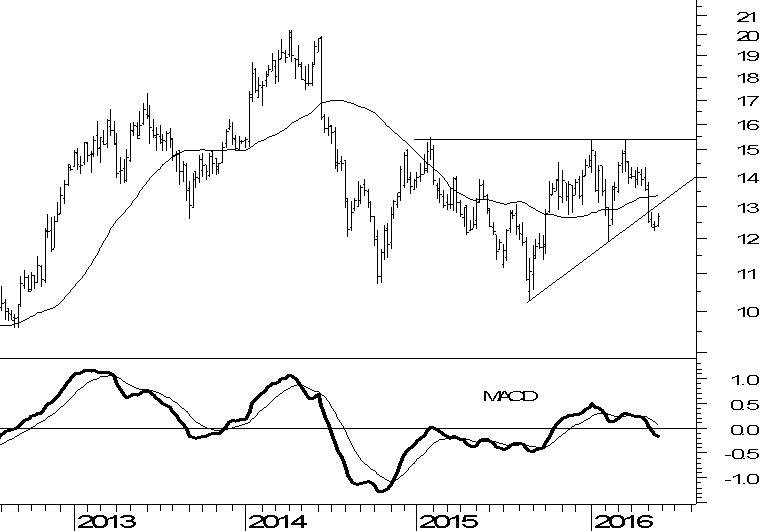 Lufthansa leek een paar maanden geleden nog de weg omhoog te vinden. Een belangrijk obstakel in de weekgrafiek gooit echter roet in het eten. Tot tweemaal toe bleek dit jaar de vraag naar het aandeel onvoldoende om de koers boven de weerstand rond €15,50 te tillen. Inmiddels is het technische beeld flink verzwakt. Zeker nadat het 40-weeks gemiddelde rond €13,50 en de stijgende steun rond €13 zijn bezweken. Dat is niet wat we verwachten van een sterke stijgende trend. Inmiddels is ook de MACD-indicator teruggekeerd onder de nullijn, wat aangeeft dat het momentum negatief is. Aan een adviesverlaging naar ‘houden’ valt dan ook niet te ontkomen. Tegelijkertijd is er geen reden voor zittende aandeelhouders om overhaast te reageren.