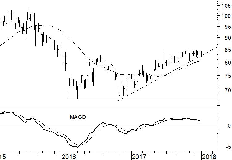 De andere kant van de medaille is dat een koersval op basis van een weekslot onder CHF82 een belangrijke verzwakking zal zijn van het technische beeld. Dat zou een einde maken aan de stijgende trend. Vooralsnog is dat niet ons favoriete scenario en daarom houden wij vast aan het bestaande koopadvies.