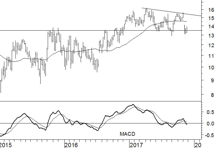 SBM Offshore heeft van ons lange tijd het voordeel van de twijfel gekregen. Maar nu stelt het aandeel door gebrek aan koopinteresse teleur. De laatste maanden lukt het beleggers echter niet om het aandeel naar hogere niveaus te tillen. Van opeenvolgende hogere toppen is dan ook geen sprake. Aan de onderkant weet het aandeel ternauwernood vast te houden aan het steunniveau rond €13,50. Inmiddels beweegt het 40-weeks gemiddelde al in neerwaartse richting en is de MACD-indicator onder de nullijn gedoken.