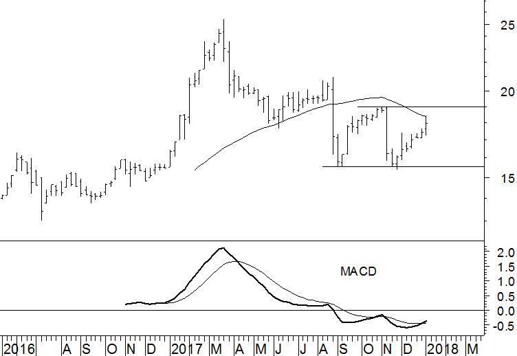 Sif bereikte in maart vorig jaar een hoogtepunt van €25. Daarna zakte het aandeel terug tot €16. Daar is het vooralsnog bij gebleven: het €16-niveau lijkt de ondergrens te zijn van het negatieve sentiment. In de weekgrafiek tekent zich een zijwaarts patroon af met een bovengrens op €19. Binnen deze bandbreedte is het trendbeeld neutraal.