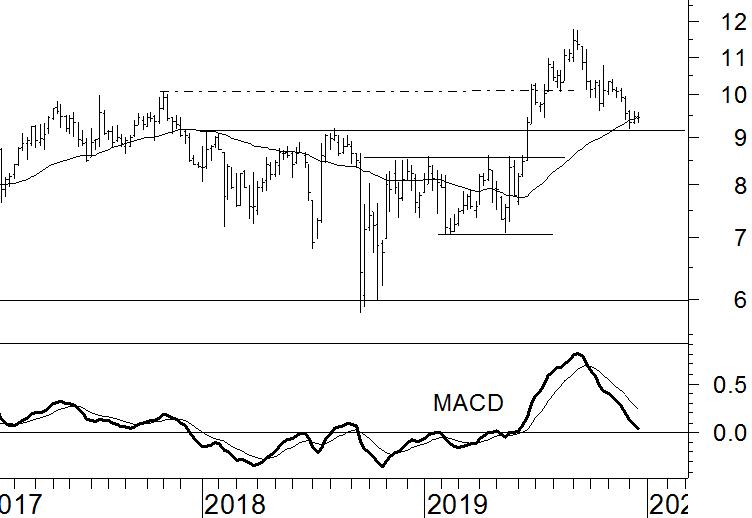 TomTom staat sinds de zomer op ‘kopen’. De koers brak toen door de horizontale weerstand op €9,50. Tegelijkertijd draaiden de indicatoren positief: het 40-weeks voortschrijdend gemiddelde kreeg een opwaartse krul en de MACD kroop boven de nullijn. Na het koopsignaal ging de koers hard omhoog. En passant werd de weerstand van de top van eind 2017, iets boven de €10, uitgenomen. Dat betekende een bevestiging van het vlak daarvoor afgegeven koopadvies. Na de doorbraak tot boven €10 ging het aanvankelijk hard omhoog. Even werd zelfs het €12-niveau aangetikt. Maar daarna kwam de klad erin. Sterker nog, de stijgende trend wordt serieus uitgedaagd. De koers mag eigenlijk niet beneden de oude trendlijn op €9,50 zakken. Idealiter vindt de koers nu steun op het nog altijd stijgende 40-weeks voortschrijdende gemiddelde.