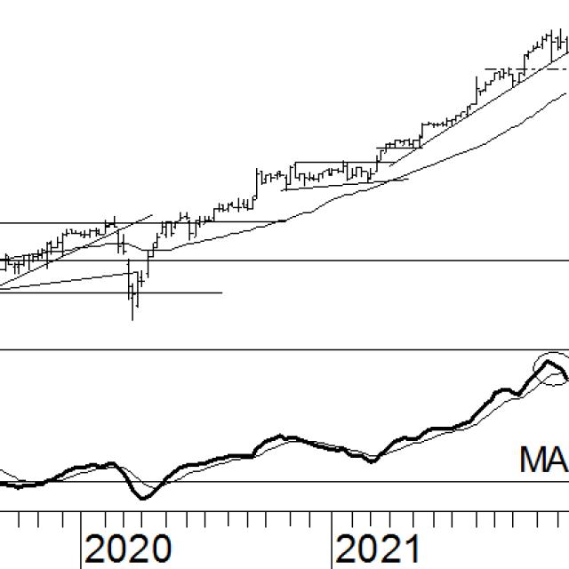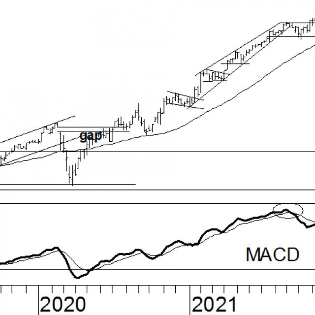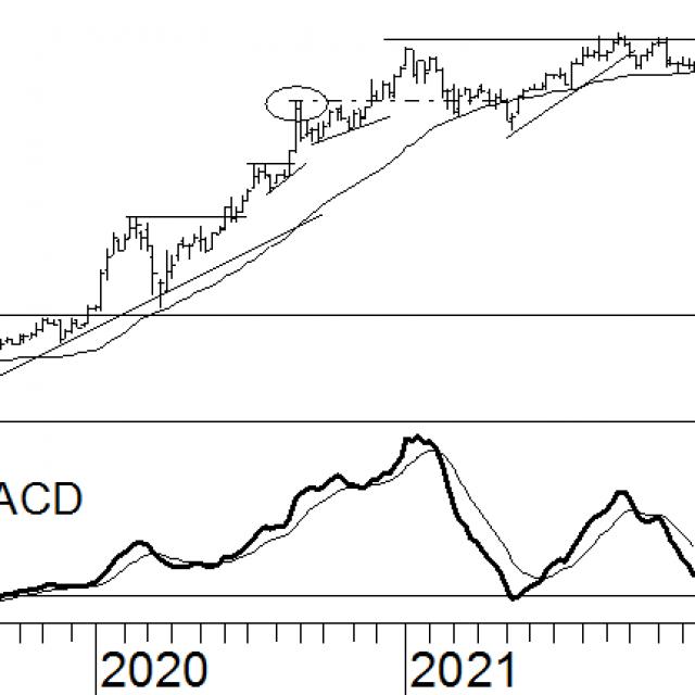 Deze zomer heeft Alphabet zich ontdaan uit het opwaartse wigpatroon. Ondanks het feit dat de trendindicatoren het koopadvies nog altijd ondersteunen, lijkt het af aandeel te streven op een pauzepatroon. Dit betekent dat er een zijwaartse beweging in het verschiet ligt, met de kans op een herpakking van de trend in een later stadium. Deze horizontale beweging was al te verwachten door de kruising in de MACD. Indien deze zich in het positieve segment bevindt, maar een dalende helling aanneemt, kan er gerekend worden op een dalend of neutraal koersverloop. Ondanks dit hinten de trendindicatoren op een stijgende trend. De koers staat boven het 40-weeks voortschrijdend gemiddelde en de MACD is positief. Dus is er geen reden om al van het koopadvies af te zien. Wel kan de koers zich enige tijd horizontaal bewegen.