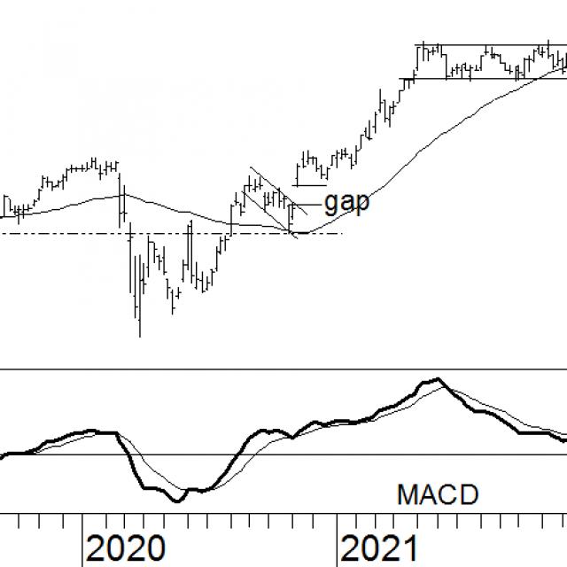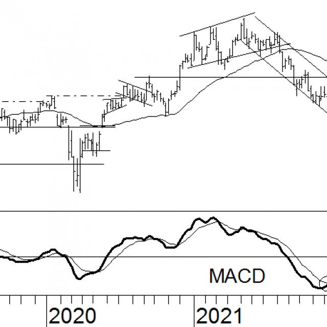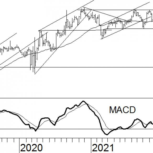 Toen Avantium in april onder het steunniveau kwam, was de koers dermate ver onder het 40-weeks voortschrijdend gemiddelde gezakt dat het aandeel werd voorzien van een verkoopadvies. Sinds deze advieswijziging is het in een neerwaarts trendkanaal beland, dat onlangs echter krachtig is doorbroken. De koers steeg tot boven het 40-weeks voortschrijdend gemiddelde. Al geeft dit een koopsignaal af, enige terughoudendheid is gepast. Doordat de gemiddeldelijn slechts een vlakke helling heeft, zou een houdadvies meer op zijn plaats zijn. Verder staat de MACD dicht tegen het nulniveau, maar nog wel in het negatieve segment. Dit duidt op een licht houdsignaal. Avantium zal dus niet direct naar ‘kopen’ worden gezet. Er zal eerst een houdadvies gelden.