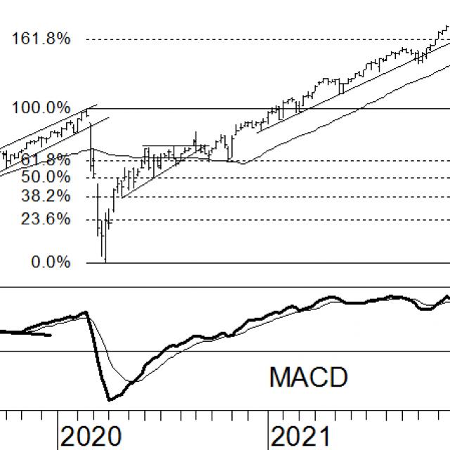 De iShares MSCI World (ticker: IWRD.AS) volgt een selectie aandelen uit de ontwikkelde landen. Enkele weken geleden wist de koers het 161,8% Fibonacci-niveau te bereiken. Dit wordt vaak gezien als een moment om wat winst uit de belegging te pakken. De leer van Fibonacci kan aan de hand van het hoogste en laagste punt de niveau’s berekenen waar de koers steun en/of weerstand zou moeten vinden. De niveaus 38,2% en 61,8% worden hierbij als belangrijkste gezien. Verder wordt de koers al sinds begin dit jaar omhoog begeleid door de opwaarts gerichte steunlijn. Afgaand op de indicatoren, zal de koers nog geen afscheid nemen van deze lijn. De MACD is positief en de koers noteert boven het 40-weeks voortschrijdend gemiddelde. Deze tracker krijgt een koopadvies.