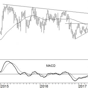 Met de doorbraak boven de weerstand op €228 komt de dalende trend tot een einde. Tegelijkertijd zien wij dat de koers terug is boven het 40-weeks gemiddelde en dat de MACD-indicator de nullijn naar boven toe kruist. Allemaal aanwijzingen dat de verkoopdruk is weggenomen en daarmee ook het neerwaartse risico. In de komende weken ontstaat zelfs wat opwaarts potentieel.