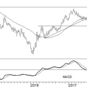 Vale (VALE) staat sinds vorig jaar zomer op onze radar. Toen ging de huidige stijgende trend van start. Beleggers van het eerste uur zitten op een papieren koerswinst van ongeveer 80%. Voorlopig zien wij geen reden om deze papieren winst te verzilveren. Het aandeel heeft net weer de opwaartse lijn te pakken. Dat blijkt uit de opleving vanaf de onderliggende steunlijn en het 40-weeks gemiddelde. Ook de MACD-indicator wist een terugval onder de nullijn te vermijden en kruist nu in opwaartse richting.