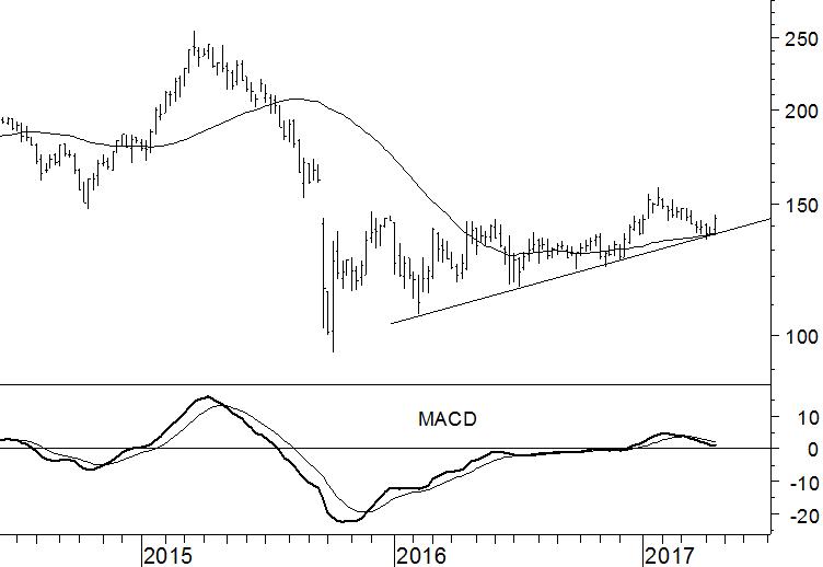 Toch denken wij dat de correctie van de laatste maanden aan z’n uiterste reikwijdte is gekomen. De eerste aanwijzing daarvoor is de opleving vanaf het steunniveau rond €137. Dit steunniveau wordt gevormd door een combinatie van het 40-weeks gemiddelde en de onderliggende steunlijn. Samen vormt dit een uitstekend vangnet onder de beurskoers. Vanaf hier is een voortzetting van de stijgende trend het meest waarschijnlijk en dat maakt Volkswagen kansrijk in de komende maanden.